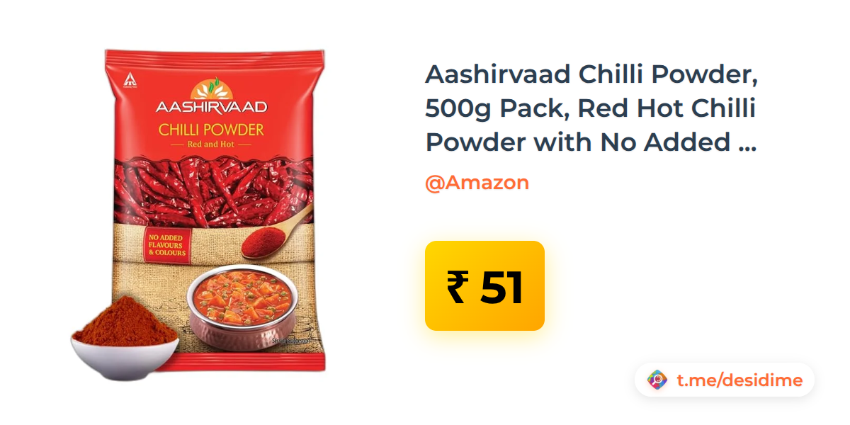 80% off on - Aashirvaad Chilli Powder, 500g Pack, Red Hot Chilli Powder with No Added Flavours and Colours - Rs. 51