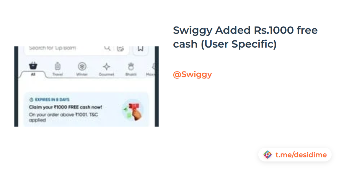 Swiggy Added Rs.1000 free cash (User Specific)