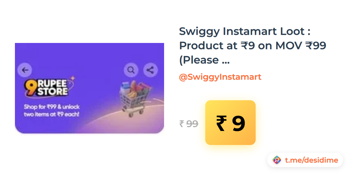 91% off on - Swiggy Instamart Loot : Product at ₹9 on MOV ₹99 (Please check description) - Rs. 9