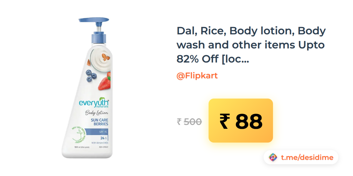 82% off on - Dal, Rice, Body lotion, Body wash and other items Upto 82% Off [location specific] - Rs. 88