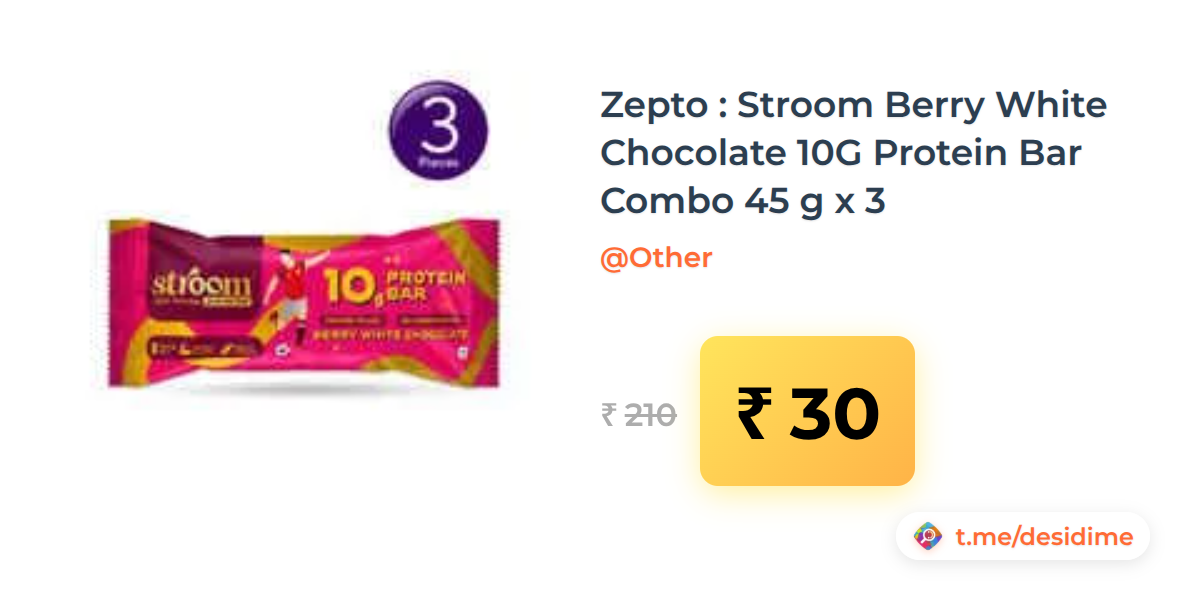 86% off on - Zepto : Stroom Berry White Chocolate 10G Protein Bar Combo 45 g x 3 - Rs. 30