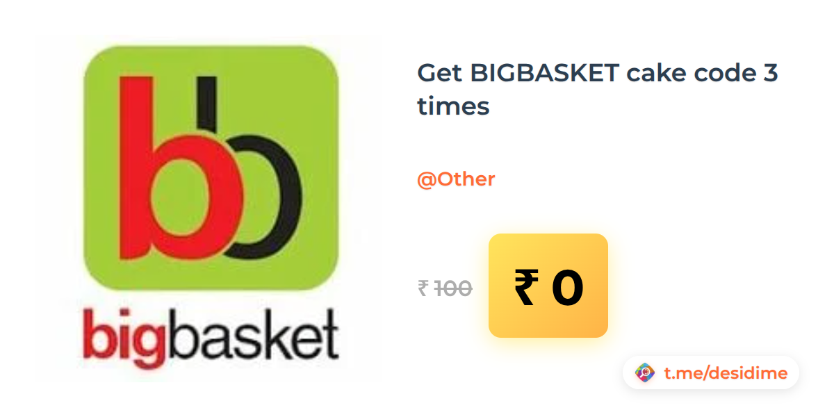 100% off on - Get BIGBASKET cake code 3 times - Rs. 0