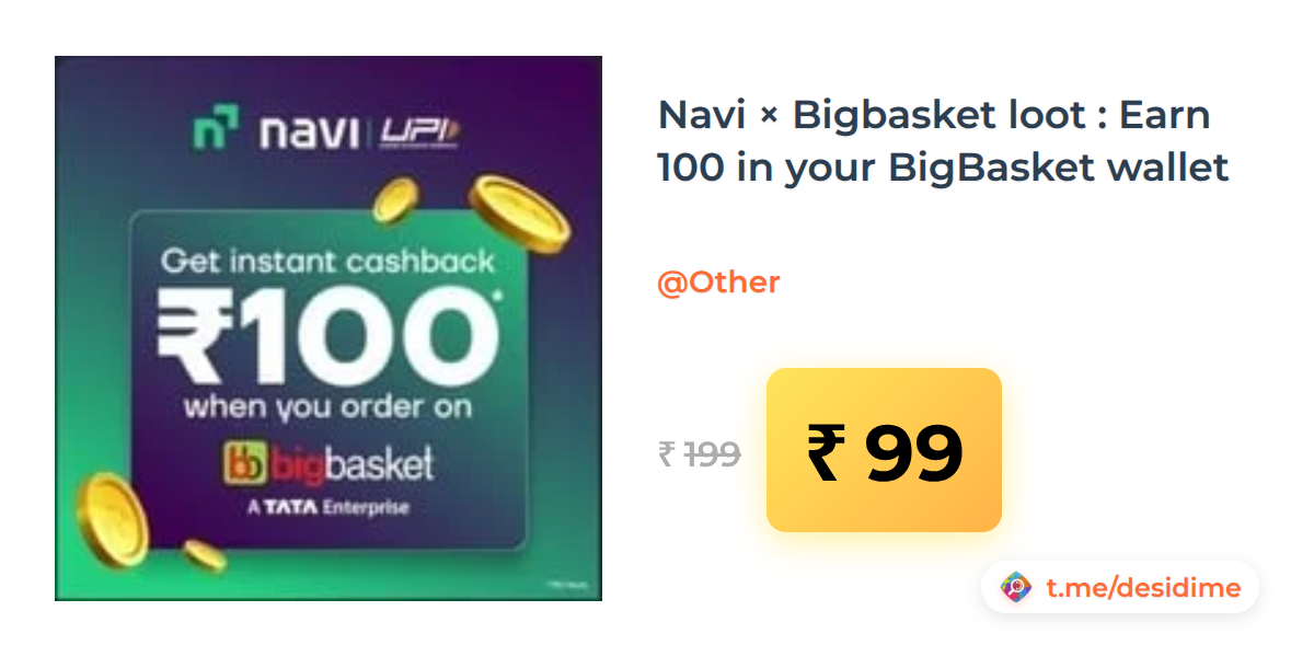 50% off on - Navi × Bigbasket loot : Earn 100 in your BigBasket wallet - Rs. 99