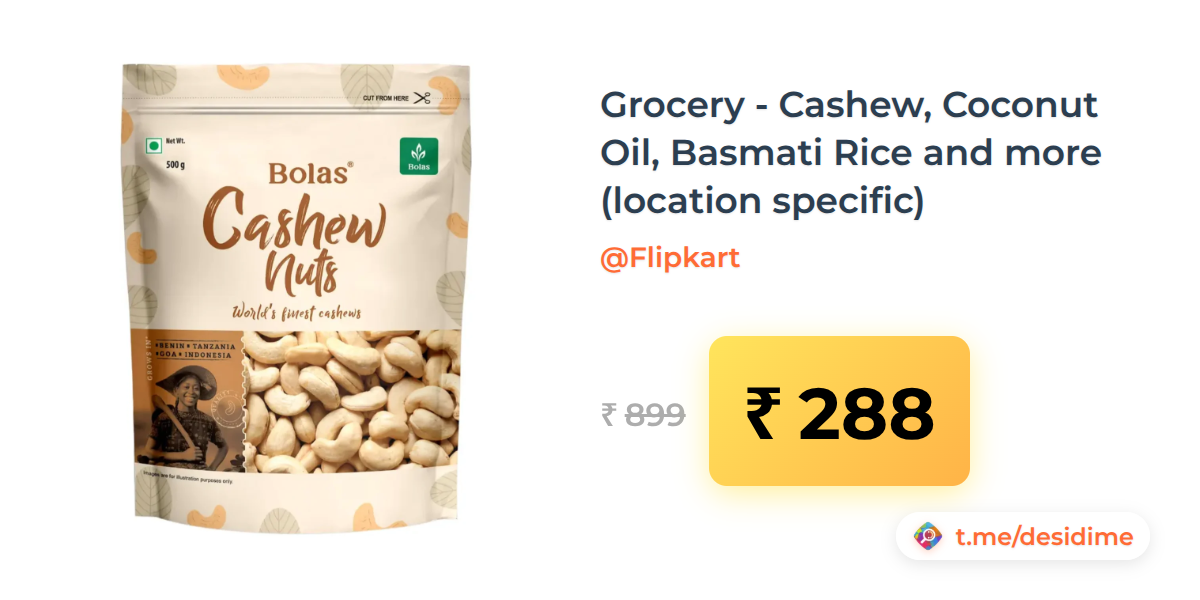 68% off on - Grocery - Cashew, Coconut Oil, Basmati Rice and more (location specific) - Rs. 288
