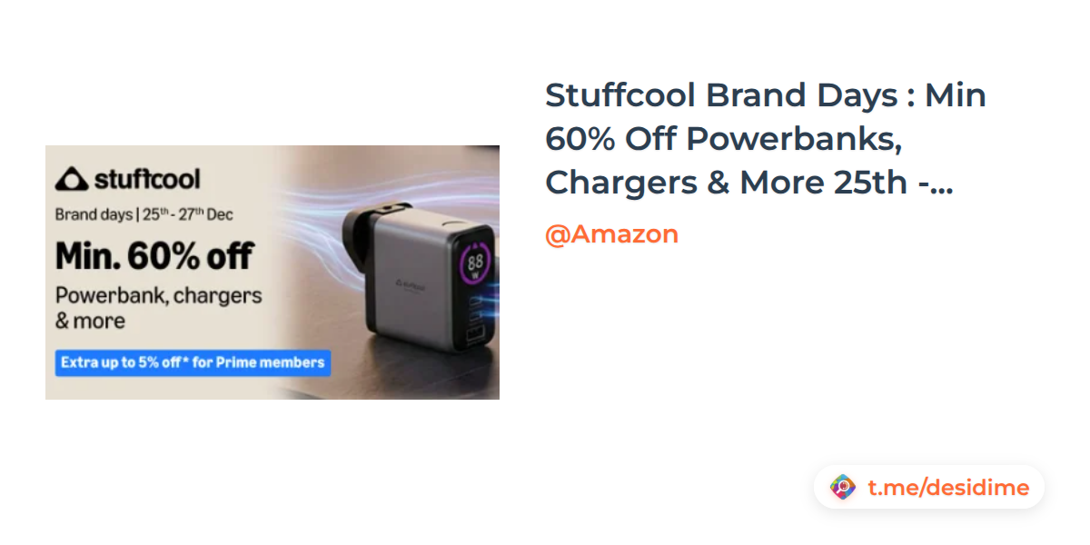 🌡210° - Stuffcool Brand Days : Min 60% Off Powerbanks, Chargers & More + Extra 5% Off for Prime members