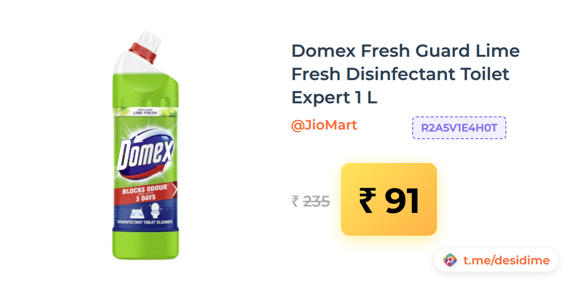 61% off on - Domex Fresh Guard Lime Fresh Disinfectant Toilet Expert 1 L - Rs. 91