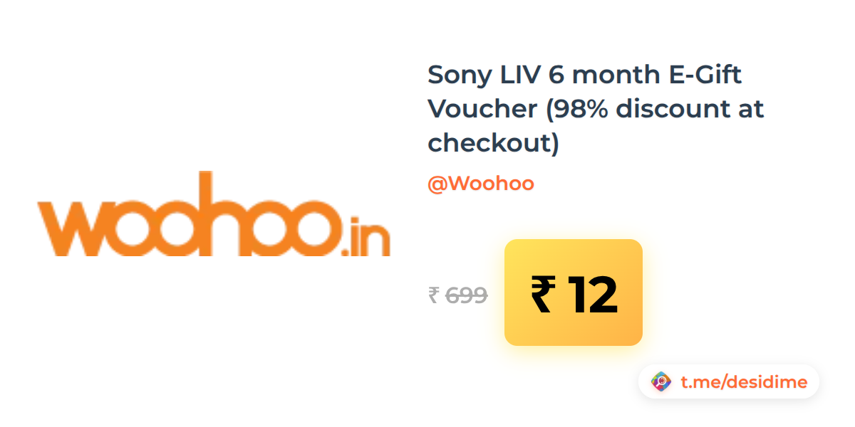 98% off on - Sony LIV 6 month E-Gift Voucher (98% discount at checkout) - Rs. 12