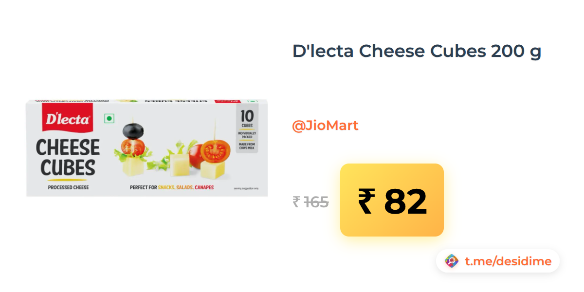 50% off on - D'lecta Cheese Cubes 200 g - Rs. 82