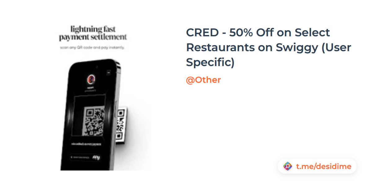 CRED - 50% Off on Select Restaurants on Swiggy (User Specific)
