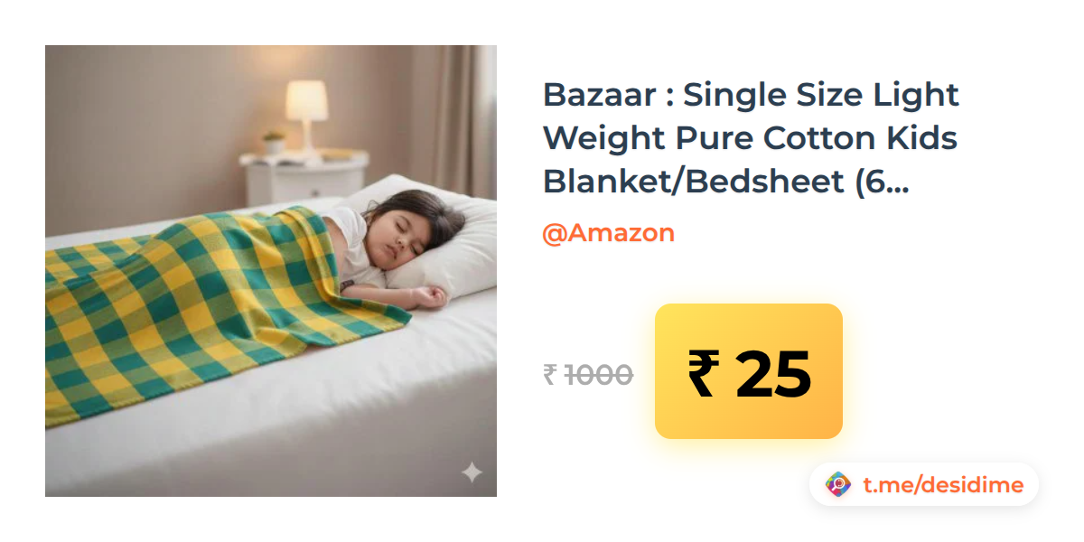 98% off on - Bazaar : Single Size Light Weight Pure Cotton Kids Blanket/Bedsheet (60X55 Inch) Set 1 - Rs. 25
