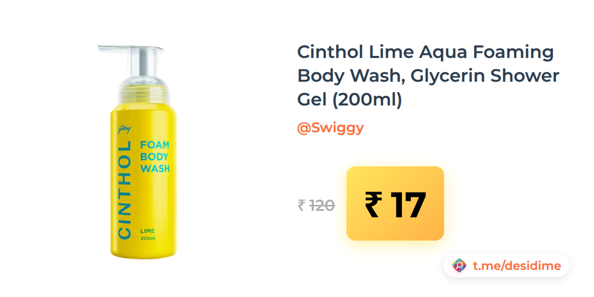 86% off on - Cinthol Lime Aqua Foaming Body Wash, Glycerin Shower Gel (200ml) - Rs. 17