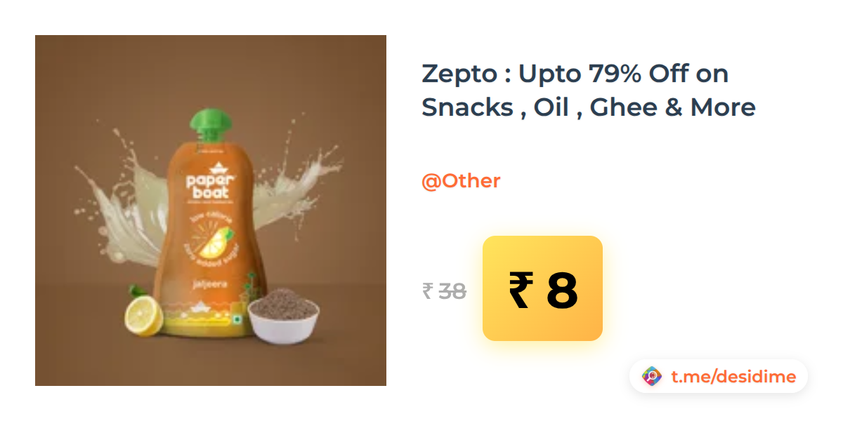 79% off on - Zepto : Upto 79% Off on Snacks , Oil , Ghee & More - Rs. 8