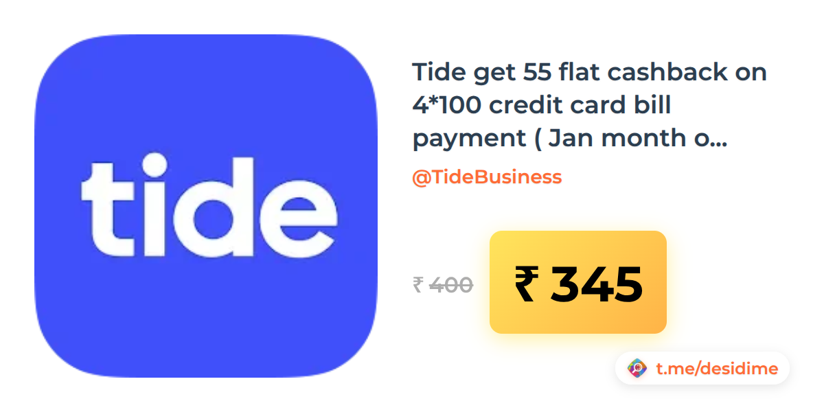 14% off on - Tide get 55 flat cashback on 4*100 credit card bill payment ( Jan month offer) - Rs. 345