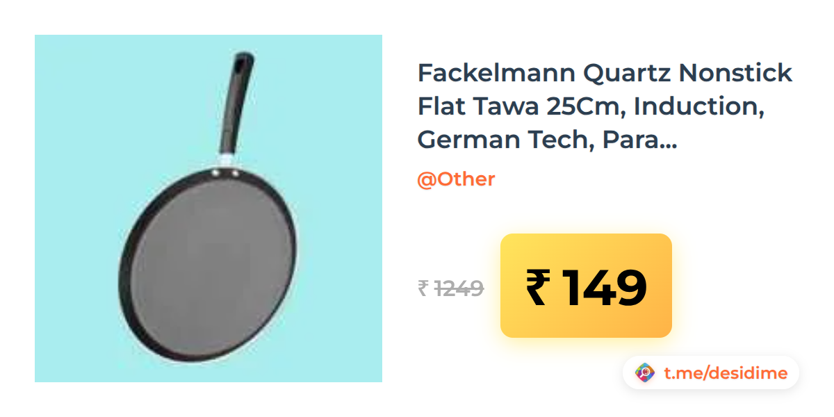 88% off on - Fackelmann Quartz Nonstick Flat Tawa 25Cm, Induction, German Tech, Paratha, Omelette, Dosa (location specific) - Rs. 149