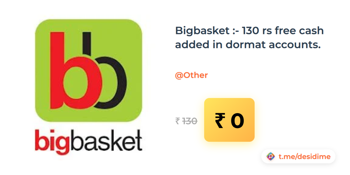 100% off on - Bigbasket :- 130 rs free cash added in dormat accounts. - Rs. 0