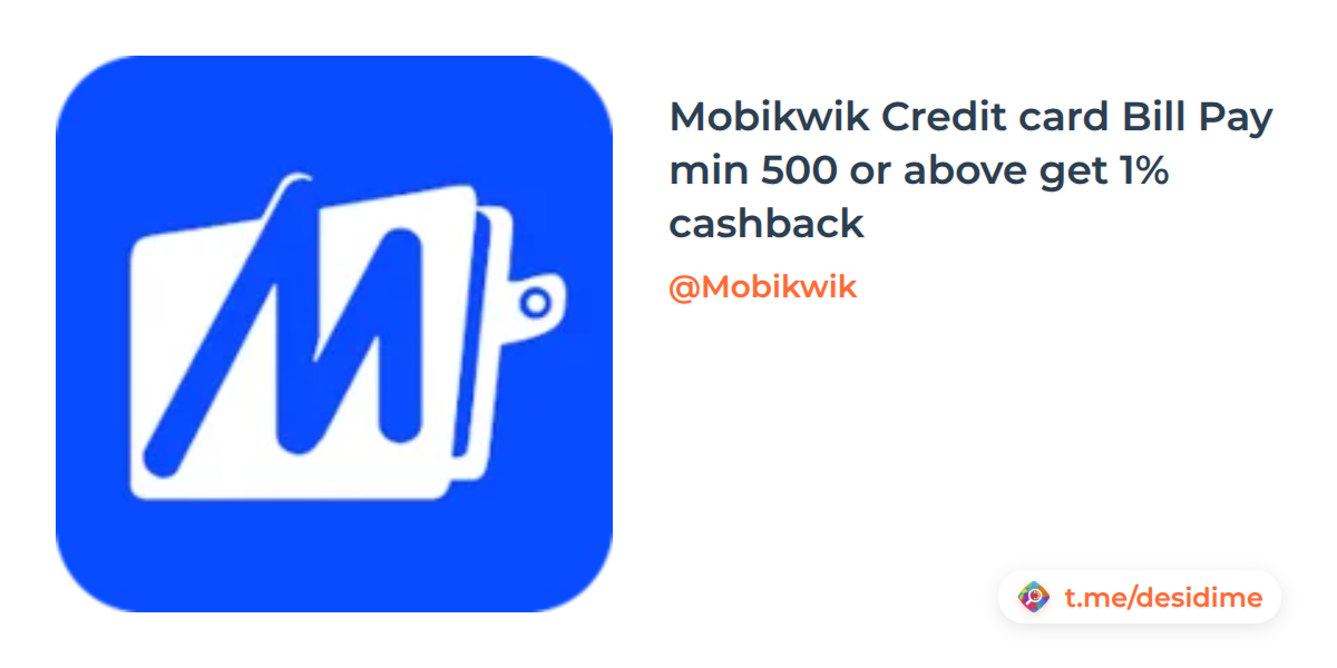 Mobikwik Credit card Bill Pay min 500 or above get 1% cashback