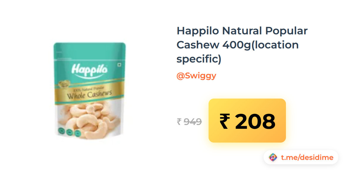 78% off on - Happilo Natural Popular Cashew 400g(location specific) - Rs. 208