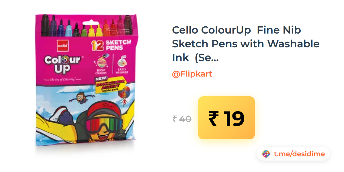 53% off on - Cello ColourUp  Fine Nib Sketch Pens with Washable Ink  (Set of 12, Multicolor) - Rs. 19