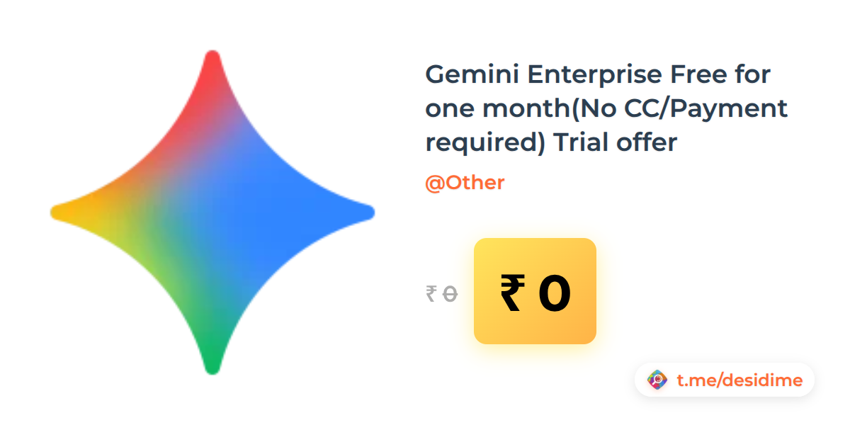 0% off on - Gemini Enterprise Free for one month(No CC/Payment required) Trial offer - Rs. 0