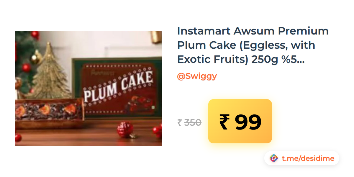 72% off on - Instamart Awsum Premium Plum Cake (Eggless, with Exotic Fruits) 250g [location specific] - Rs. 99
