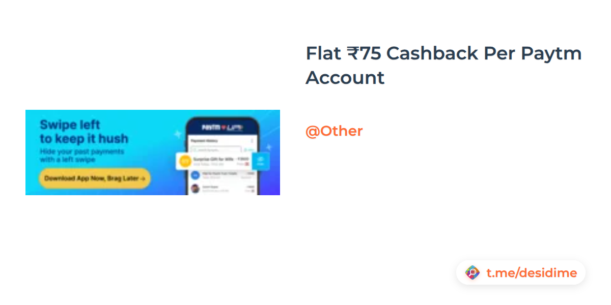 Flat ₹75 Cashback Per Paytm Account