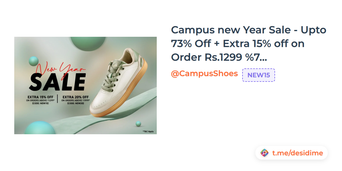 Campus new Year Sale - Upto 73% Off + Extra 15% off on Order Rs.1299 | 20% Off on Order Rs.1999