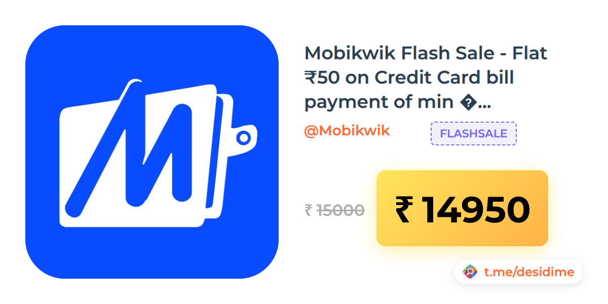 Mobikwik Flash Sale - Flat ₹50 on Credit Card bill payment of min ₹15K (Valid Till 5pm) - Rs. 14950