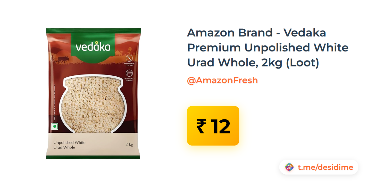 98% off on - Amazon Brand - Vedaka Premium Unpolished White Urad Whole, 2kg (Loot) - Rs. 12
