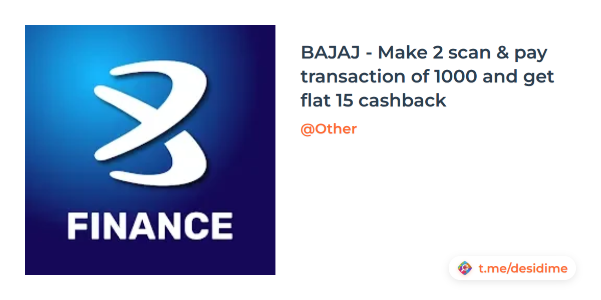BAJAJ - Make 2 scan & pay transaction of 1000 and get flat 15 cashback