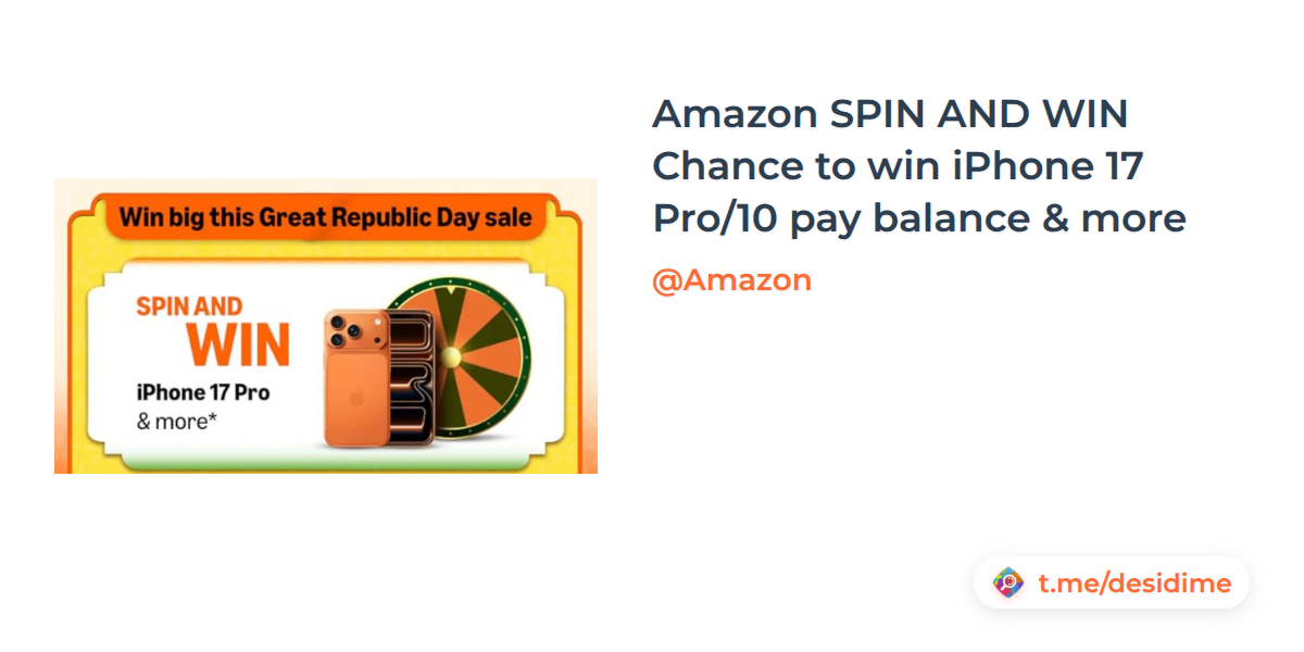 Amazon SPIN AND WIN Chance to win iPhone 17 Pro/10 pay balance & more