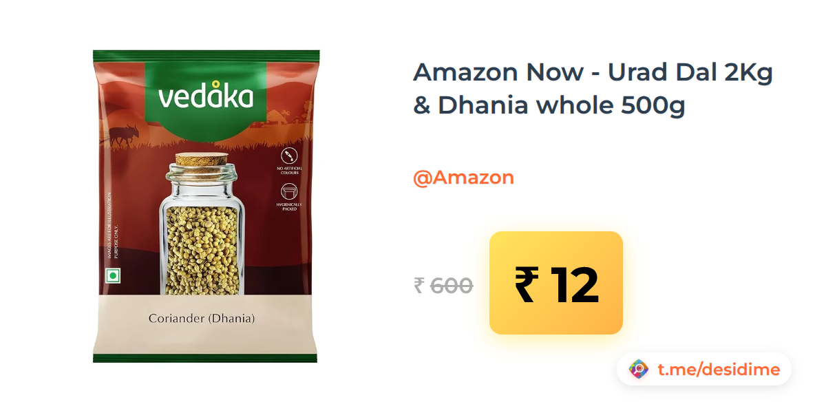 98% off on - Amazon Now - Urad Dal 2Kg & Dhania whole 500g - Rs. 12