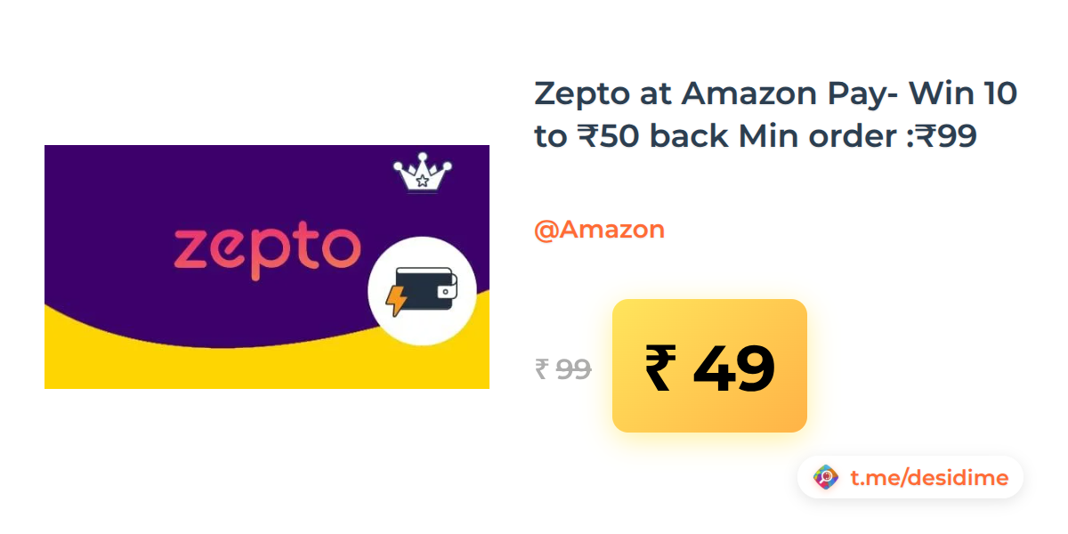 51% off on - Zepto at Amazon Pay- Win 10 to ₹50 back Min order :₹99 - Rs. 49