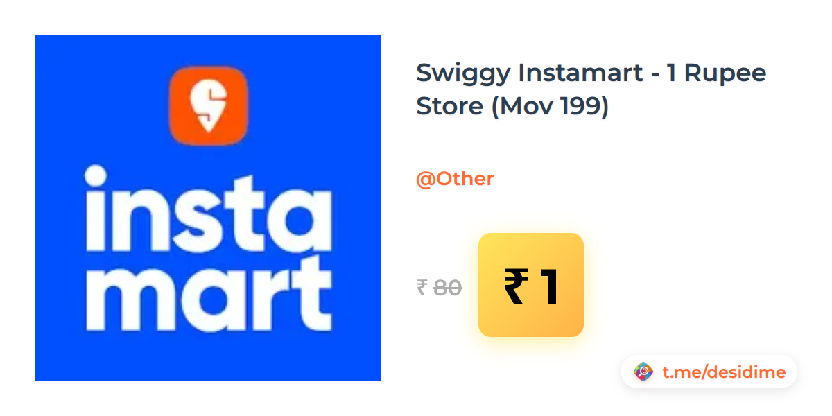99% off on - Swiggy Instamart - 1 Rupee Store (Mov 199) - Rs. 1