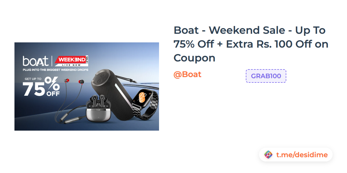 Boat - Weekend Sale - Up To 75% Off + Extra Rs. 100 Off on Coupon