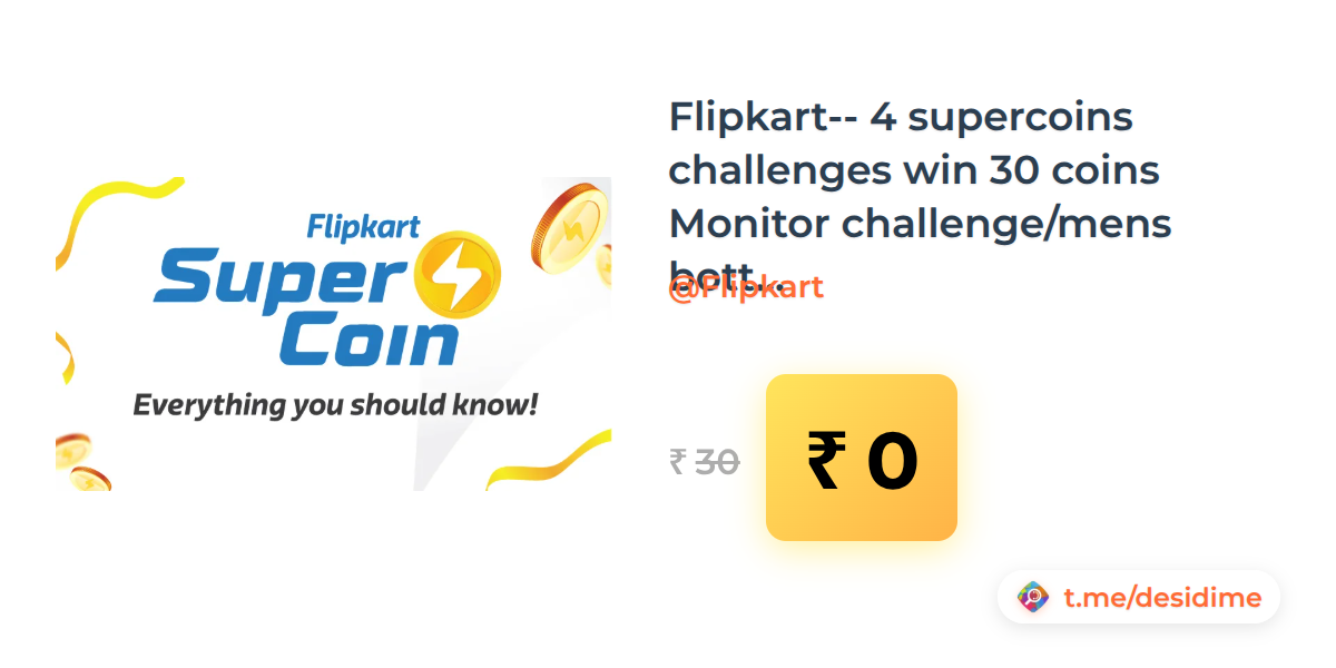 100% off on - Flipkart-- 4 supercoins challenges win 30 coins Monitor challenge/mens bottomwear challenge/mens winterwear challenge/printer challenge - Rs. 0