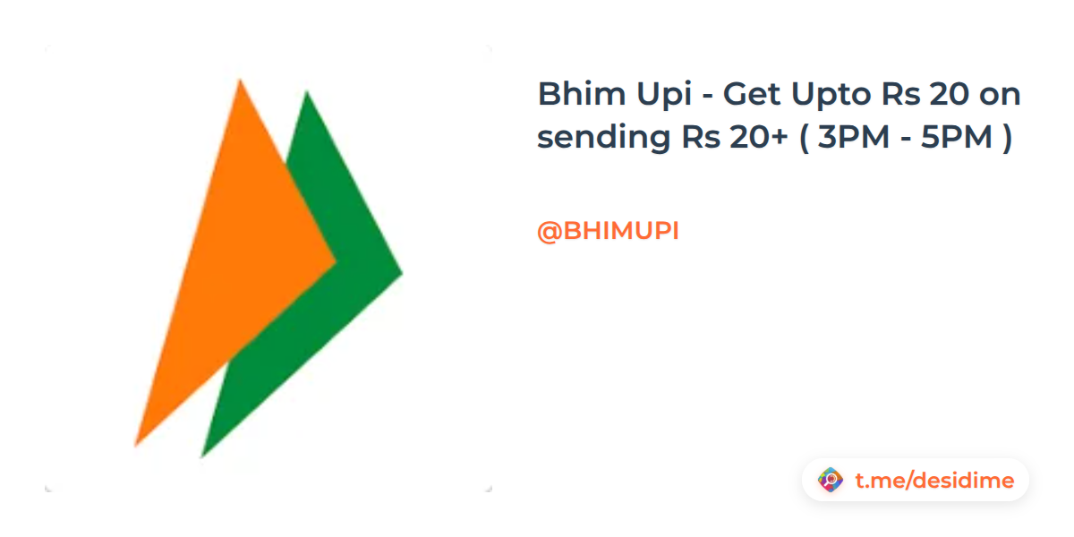 Bhim Upi - Get Upto Rs 20 on sending Rs 20+ ( 3PM - 5PM )
