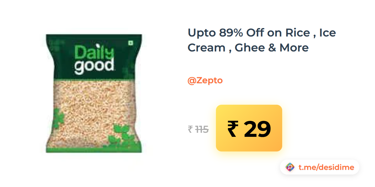 75% off on - Upto 89% Off on Rice , Ice Cream , Ghee & More - Rs. 29