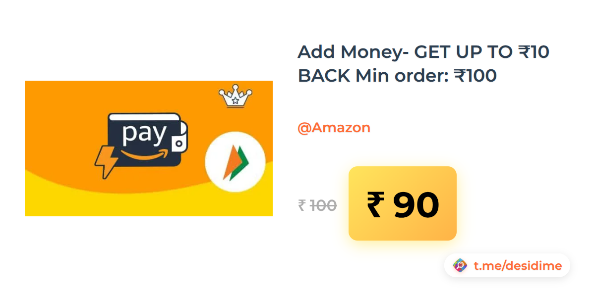 10% off on - Add Money- GET UP TO ₹10 BACK Min order: ₹100 - Rs. 90