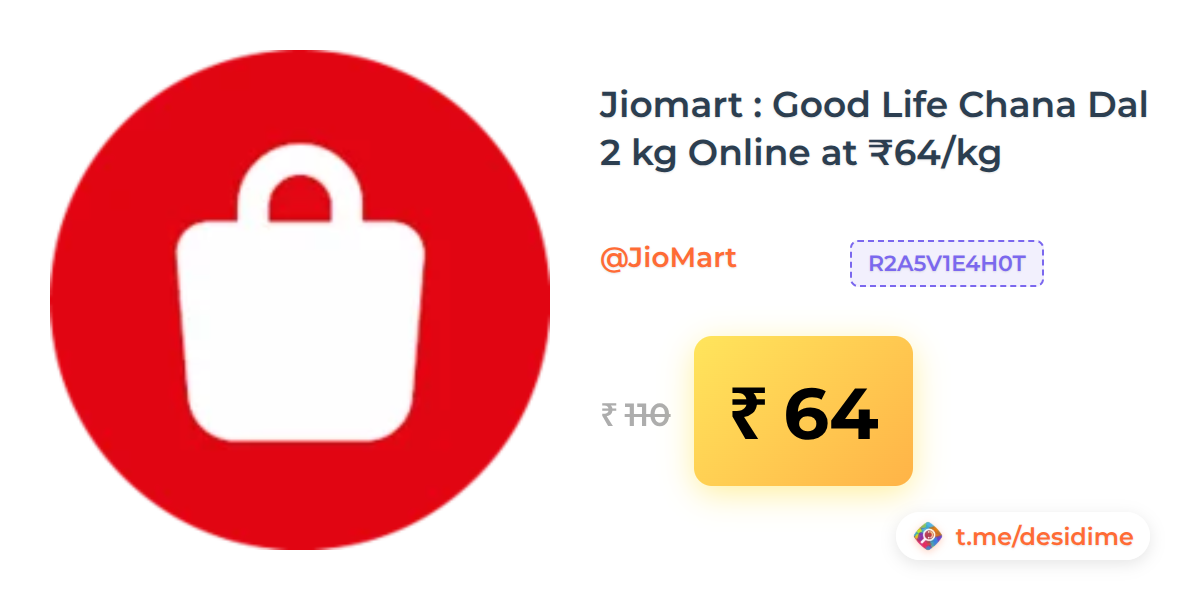 42% off on - Jiomart : Good Life Chana Dal 2 kg Online at ₹64/kg - Rs. 64