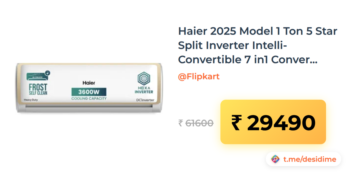 52% off on - Haier 2025 Model 1 Ton 5 Star Split Inverter Intelli-Convertible 7 in1 Convertible AC (White) - Rs. 29490