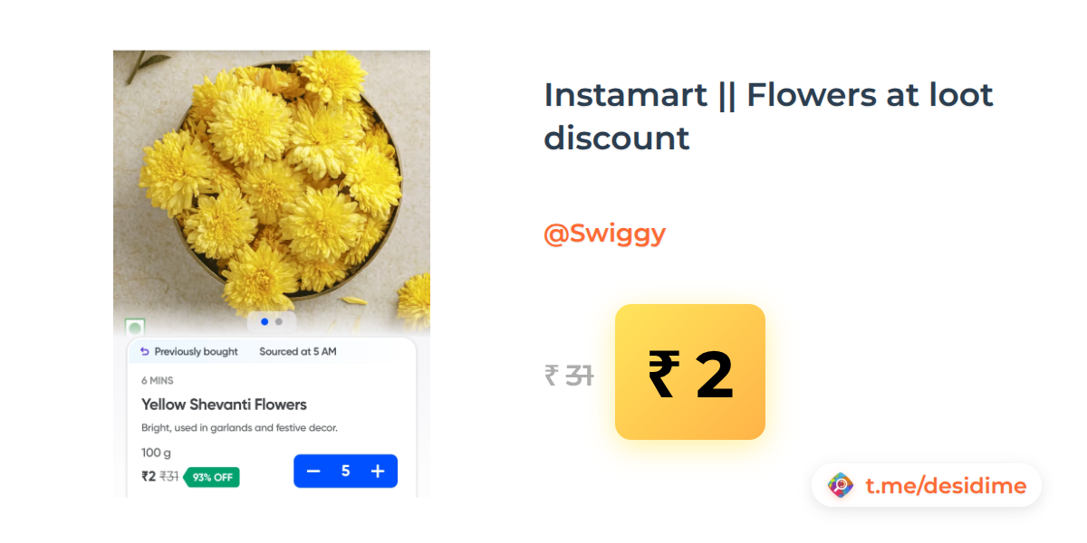 94% off on - Instamart || Flowers at loot discount - Rs. 2