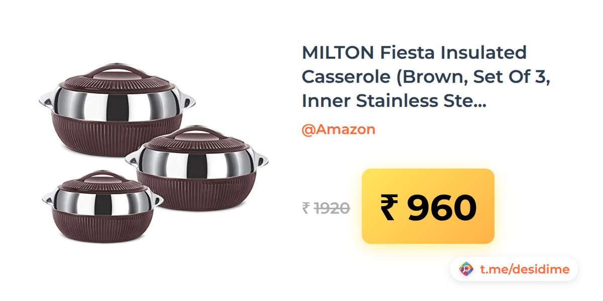 50% off on - MILTON Fiesta Insulated Casserole (Brown, Set Of 3, Inner Stainless Steel), 450 Ml - Rs. 960