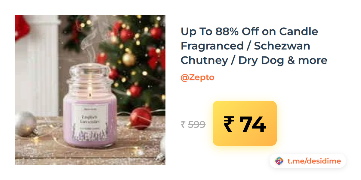 88% off on - Up To 88% Off on Candle Fragranced / Schezwan Chutney / Dry Dog & more - Rs. 74