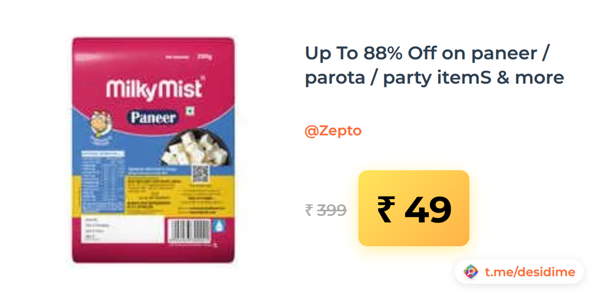 88% off on - Up To 88% Off on paneer / parota / party itemS & more - Rs. 49