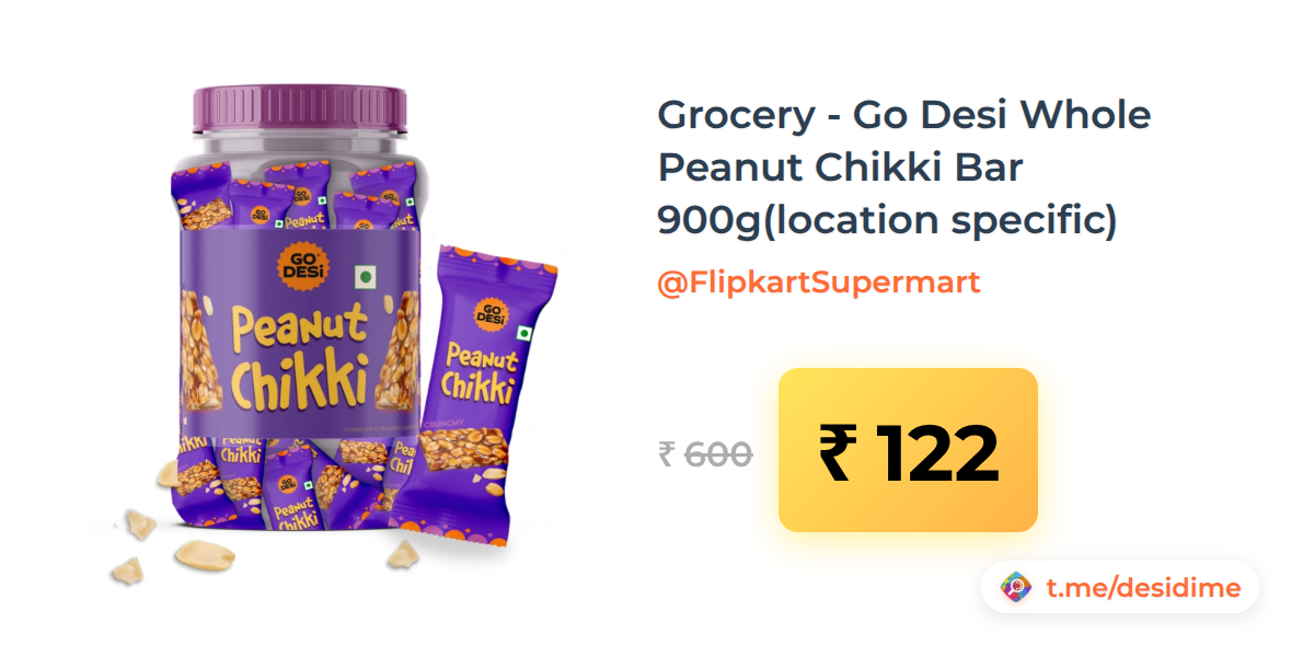 80% off on - Grocery - Go Desi Whole Peanut Chikki Bar 900g(location specific) - Rs. 122
