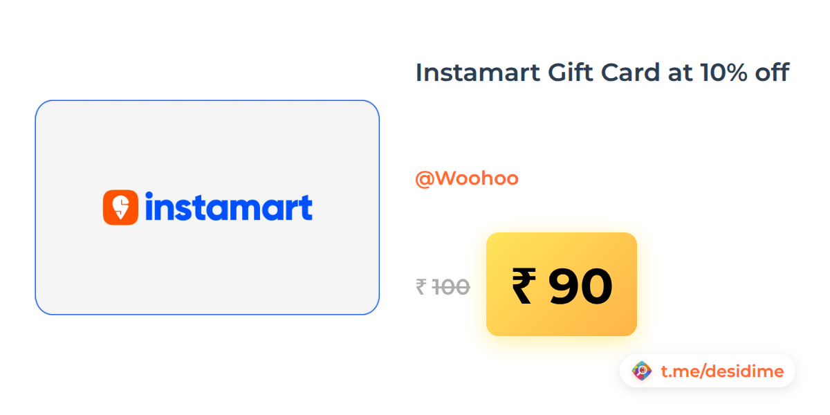 10% off on - Instamart Gift Card at 10% off - Rs. 90