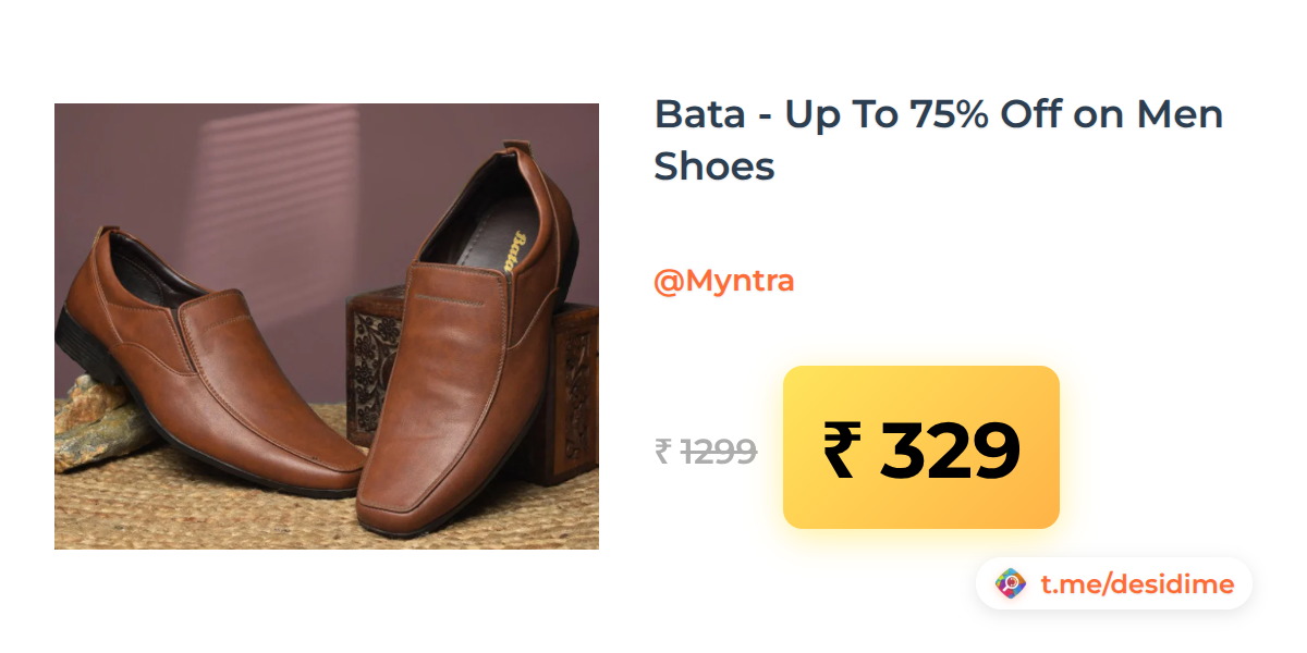 75% off on - Bata - Up To 75% Off on Men Shoes - Rs. 329