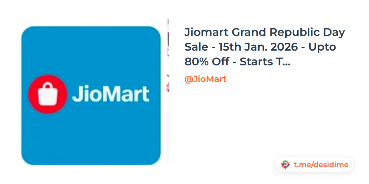 Jiomart Grand Republic Day Sale - 15th Jan. 2026 - Upto 80% Off - Starts Tonight 12 midnight