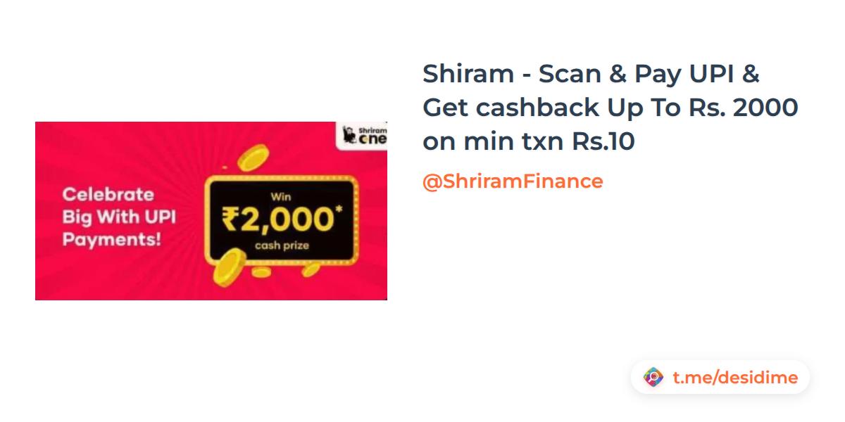 Shiram - Scan & Pay UPI & Get cashback Up To Rs. 2000 on min txn Rs.10