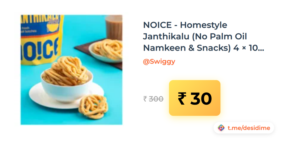 90% off on - NOICE - Homestyle Janthikalu (No Palm Oil Namkeen & Snacks) 4 × 100g (location specific) - Rs. 30